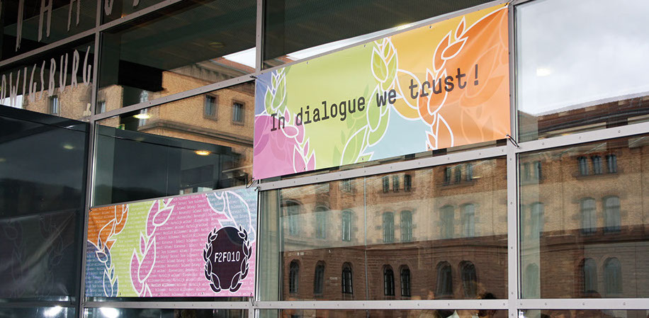 und professionelle gestalter gemeinsam auf dem podium stehen um wegweisende projekte aus design, architektur und wirtschaft face to face zu präsentieren. das partnerland sowie das design wechselt jährlich. das Erscheinungbild 2010 wurde von heike maier gestaltet. zum 10-jährigen jubiläum ein kunterbuntes kultur- und designerlebnis ... 10 jahre, 10 nationen.
