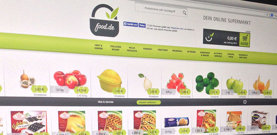 corporate design, logoentwicklung und shop-design für den Online-Supermarkt "food.de".